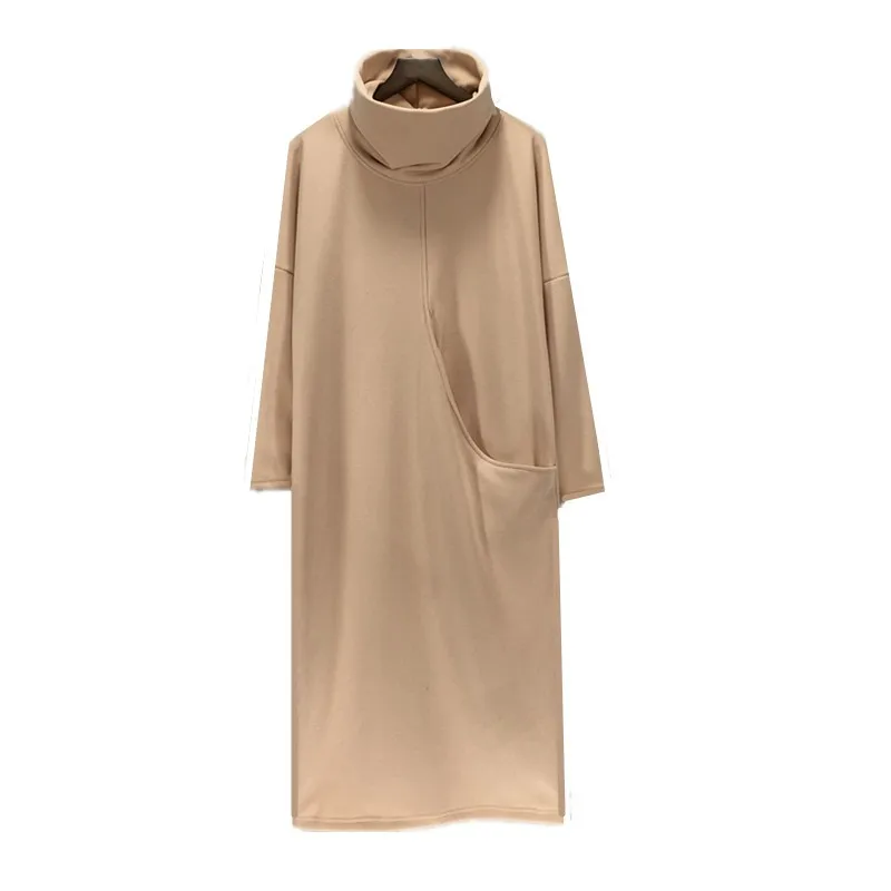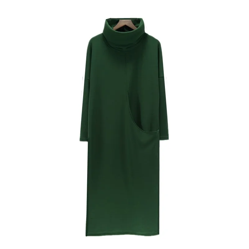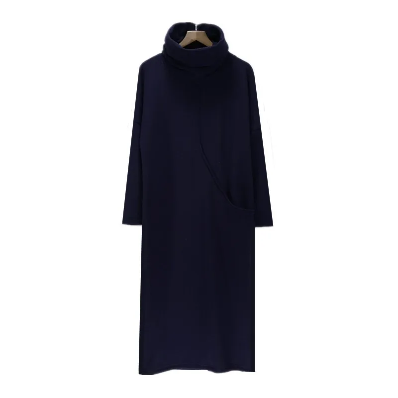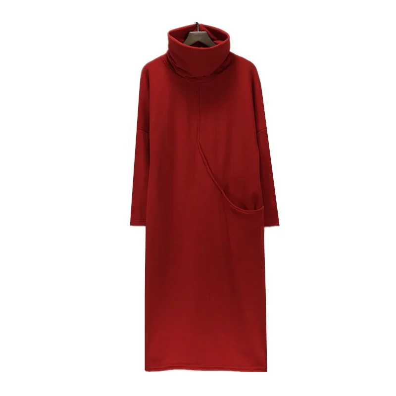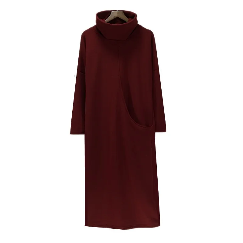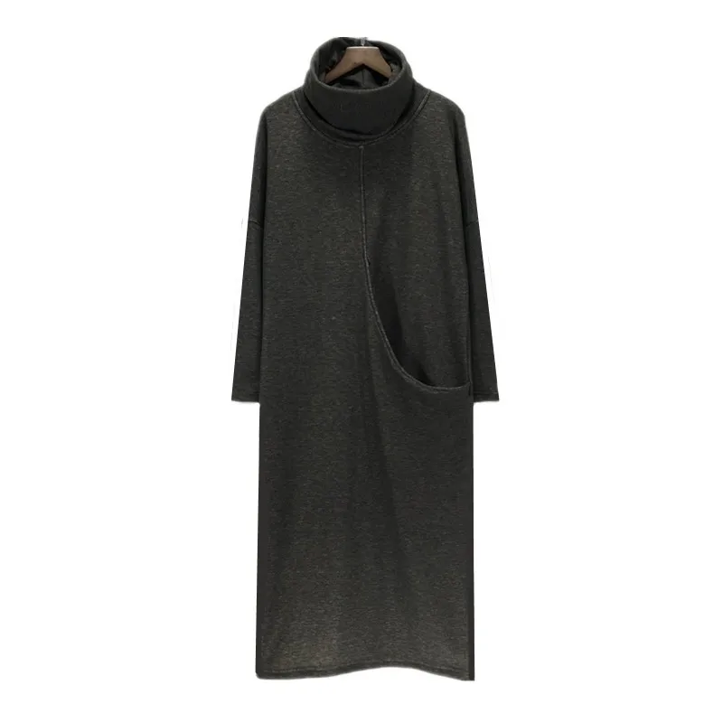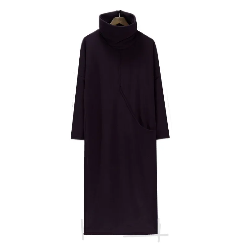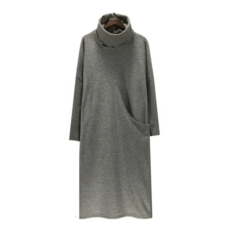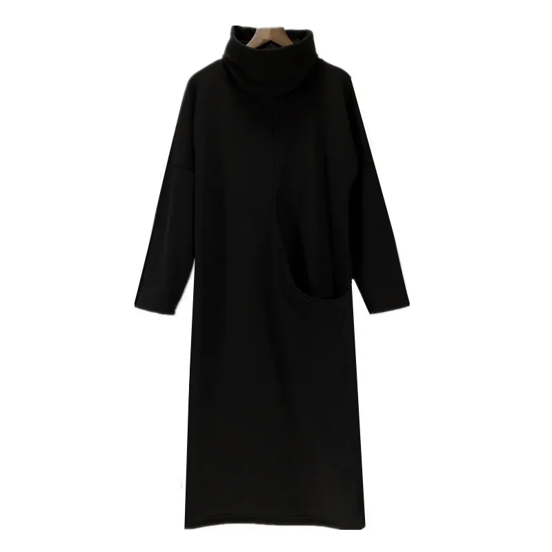 2018 hiver femmes kjole de velours d'épaisseur avec grande poche, plus la veste S-6XL mode automne robe à col roulé, robes de printemps noir