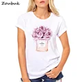 2018 Summer Tops Kvinder Blomst Parfume t-shirt camisetas mujer Fashion Ladies O-neck Short-sleevede toppe Hvid høj kvalitet t-shirt