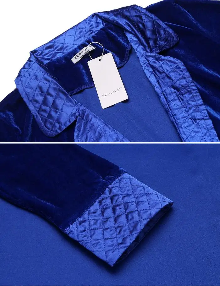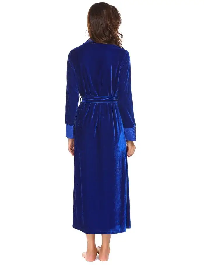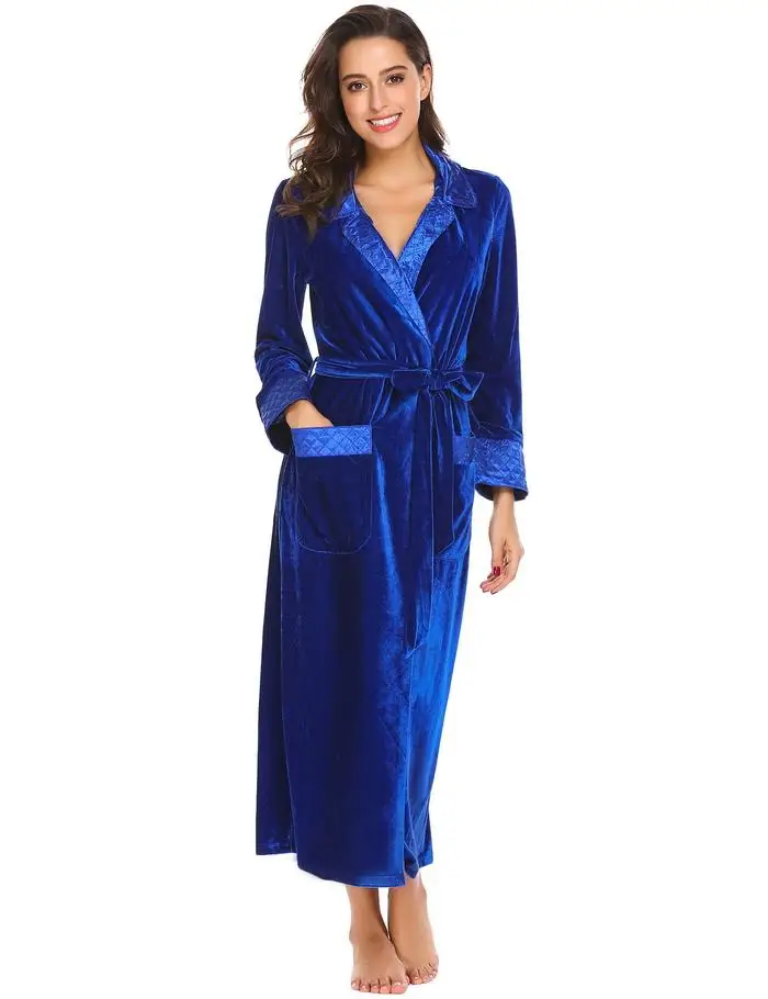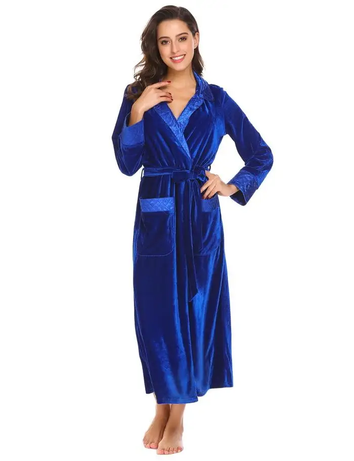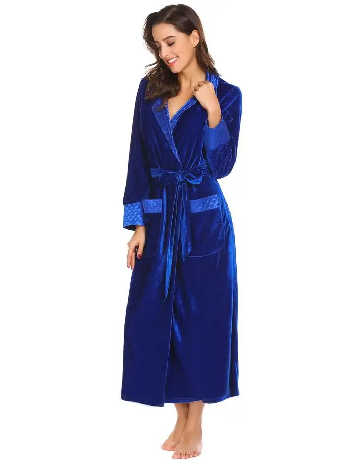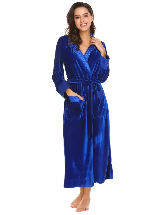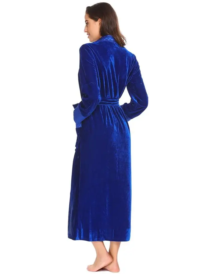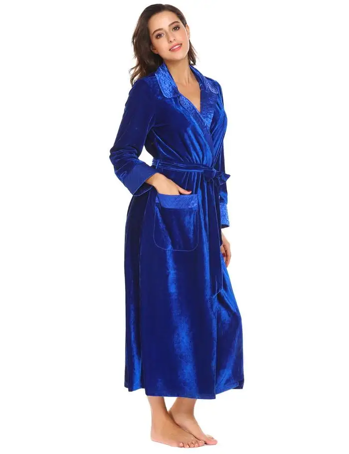 Ekouaer Robe De Flanelle Soie Longues Femmes Robe De Chambre Longues Manches Hæld Femmes Peignoir De Poche Velvet Kimono Hjem Femme Vêtements De Nuit