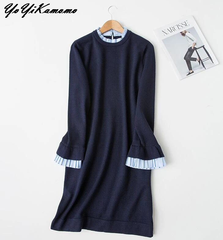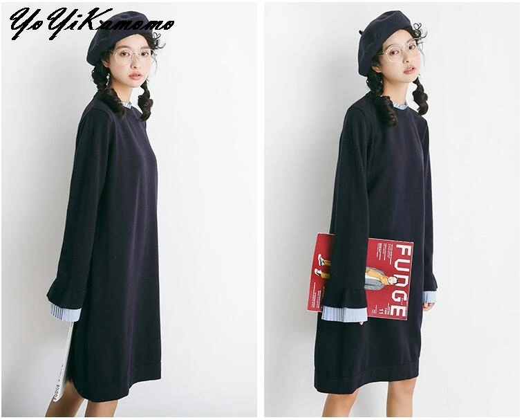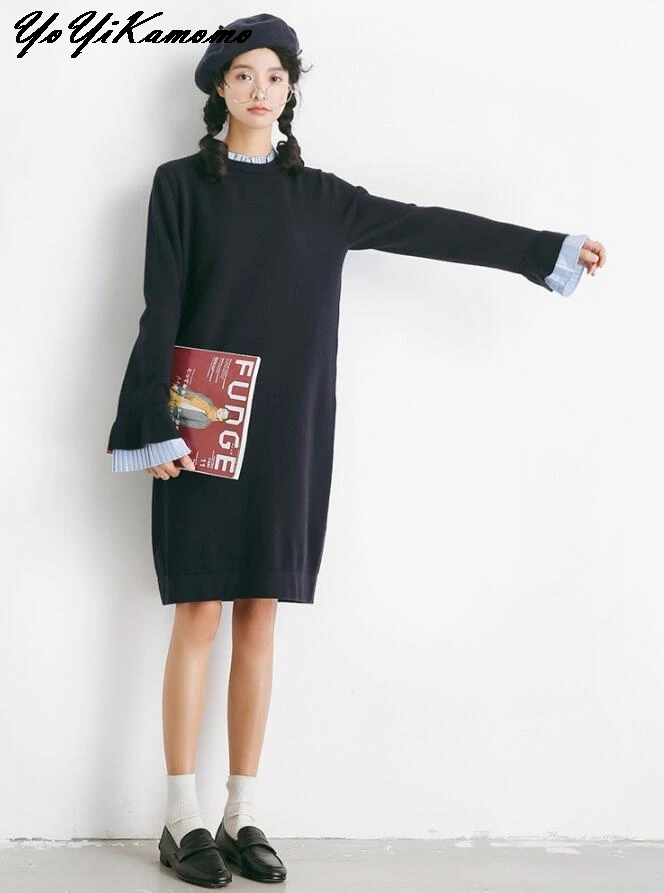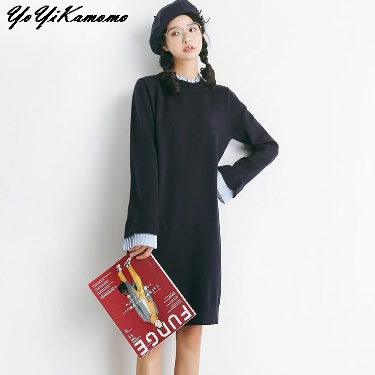 Femmes Robe 2018 Femmes Automne Hiver Robe À Manches Longues Solide Couleur Tricoté Robe Lâche Casual Femmes Robe Robe YoYiKamomo